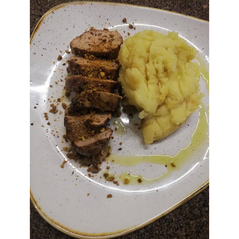 Pisztácia morzsában sült sertésszűz szarvasgomba olajjal (220g)